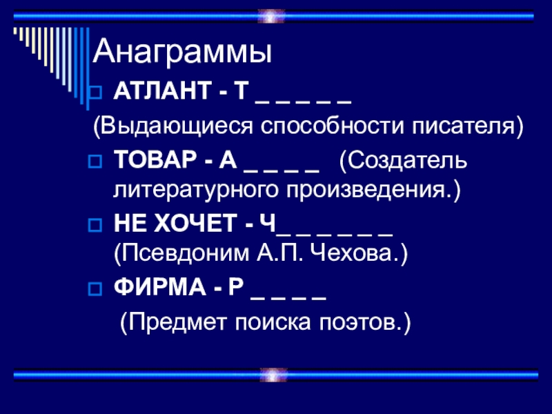 НЕ ХОЧЕТ - Ч_ _ _ _ _ _ (Псевдоним А.П. Чехова.)