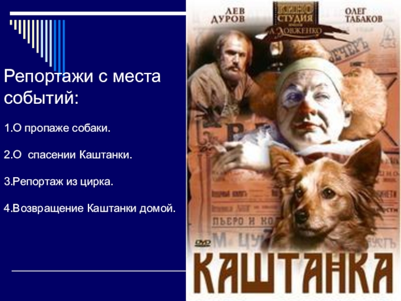 О фильме: Потерявшуюся собаку Каштанку подбирает на улице цирковой актер месье