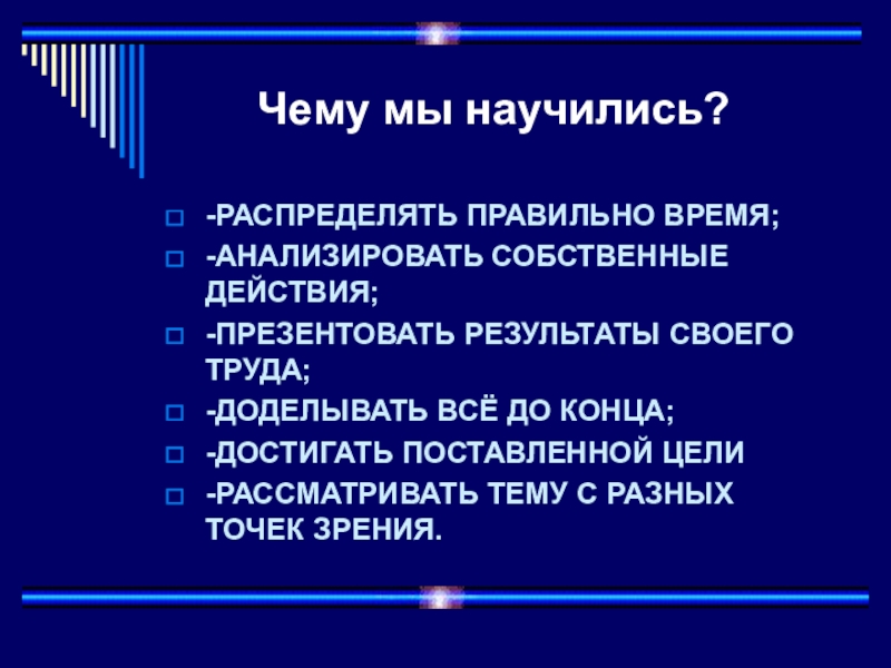 -АНАЛИЗИРОВАТЬ СОБСТВЕННЫЕ ДЕЙСТВИЯ;