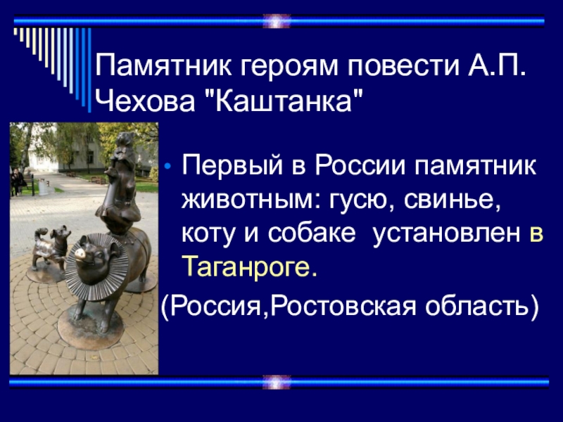 Слайд 34Памятник героям повести А.П.Чехова "Каштанка"