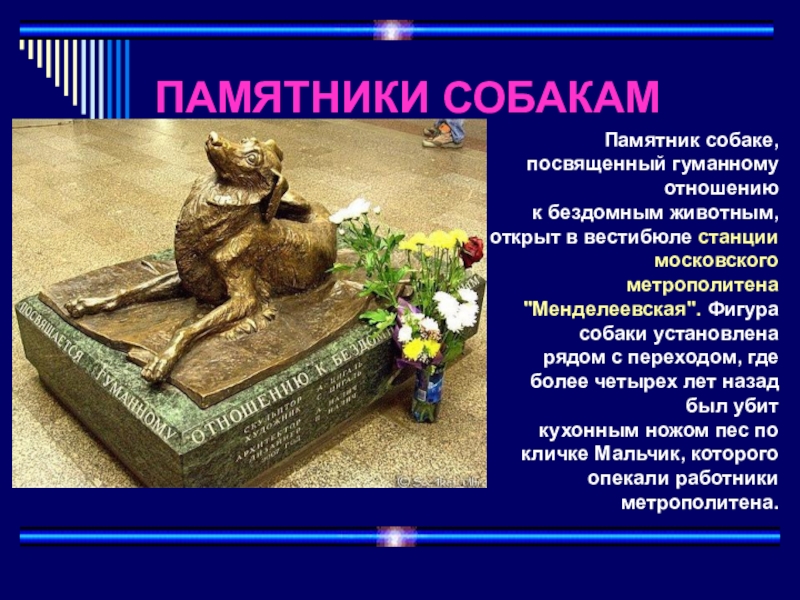 Слайд 30ПАМЯТНИКИ СОБАКАМ