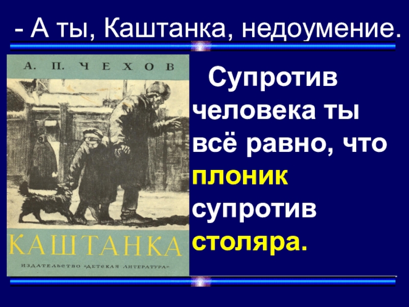 Слайд 17Аннотация: Жизнь Каштанки, маленькой рыжей собачки, не назовешь радостной. Брань и