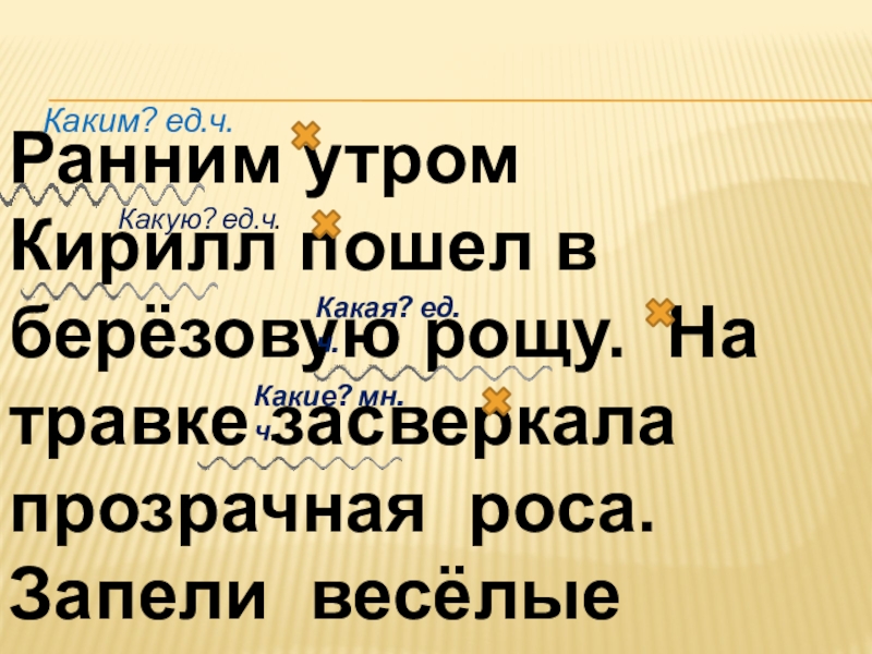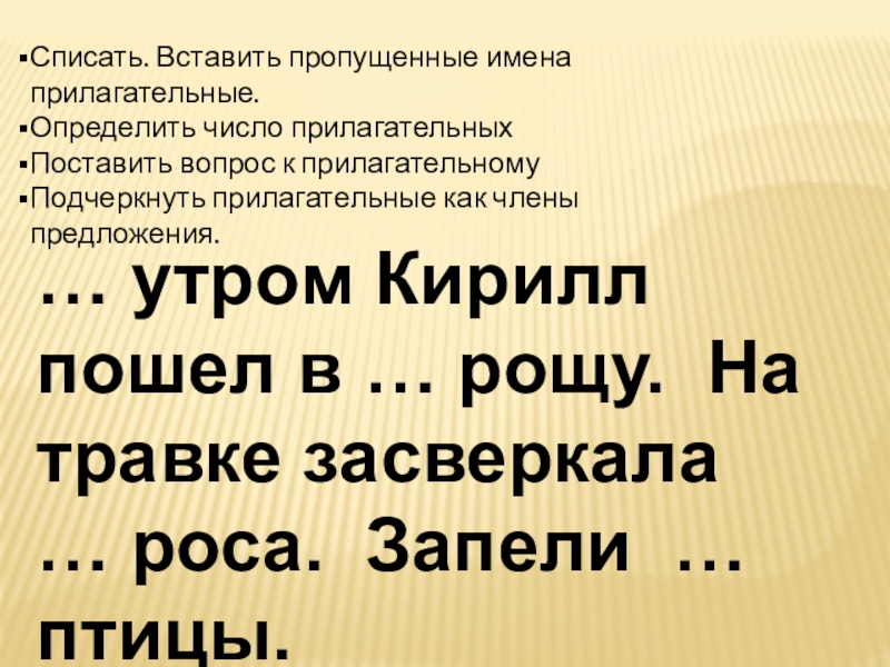 … утром Кирилл пошел в … рощу. На травке засверкала