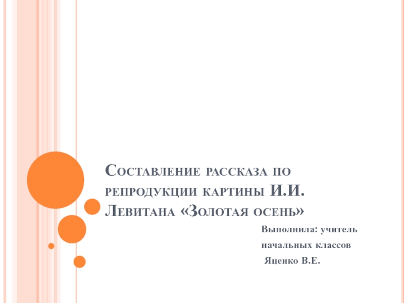 Слайд 1Составление рассказа по репродукции картины И.И. Левитана «Золотая осень»