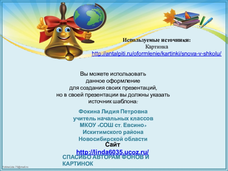 Используемые источники:Картинка http://antalpiti.ru/oformlenie/kartinki/snova-v-shkolu/