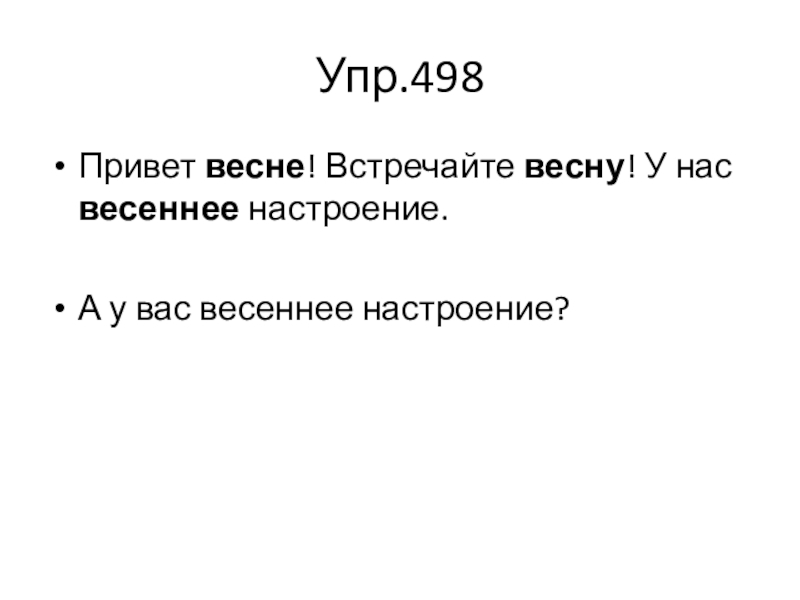 Упр.498Привет весне! Встречайте весну! У нас весеннее настроение.А у вас весеннее настроение?