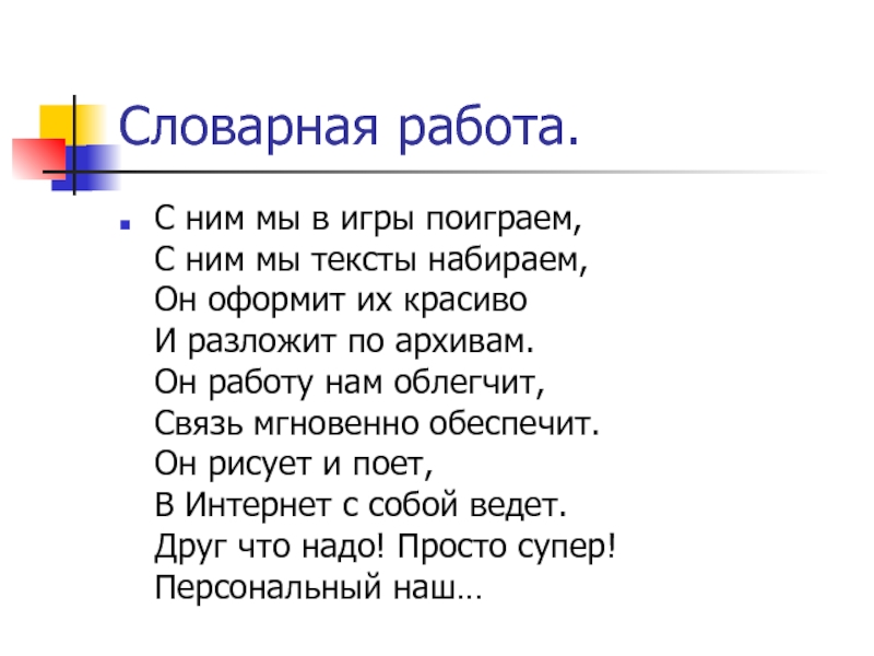 Это сайт презентаций, где можно хранить и обмениваться своими презентациями, докладами, проектами, шаблонами в формате PowerPoint с другими пользователями. Мы помогаем школьникам, студентам, учителям, преподавателям хранить и обмениваться учебными материалами.