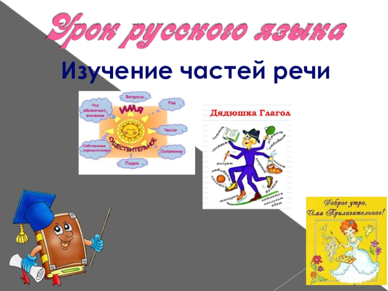 Презентация, доклад на тему Урок русского языка Изучение частей речи