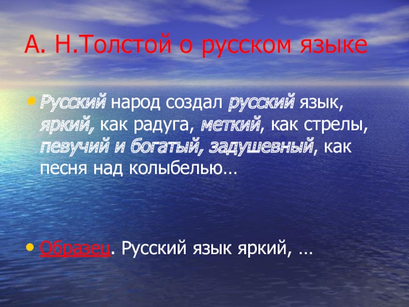 Слайд 6А. Н.Толстой о русском языке