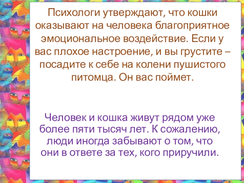 Человек и кошка живут рядом уже более пяти тысяч лет. К сожалению, люди иногда забывают о том, что они в ответе за тех, кого приручили.