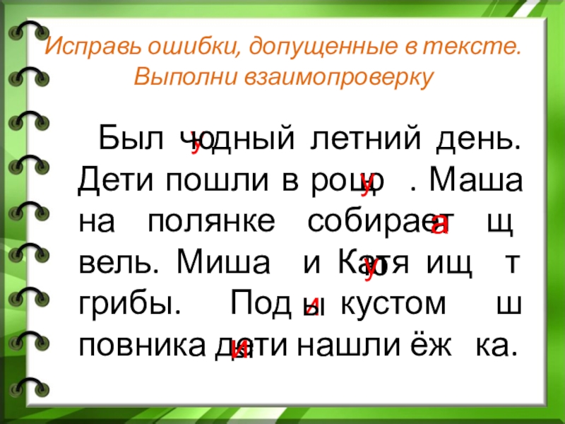 Исправь ошибки, допущенные в тексте.