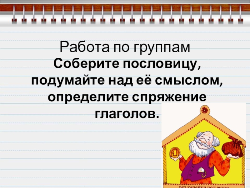 Работа по группамСоберите пословицу, подумайте над её смыслом, определите спряжение глаголов.