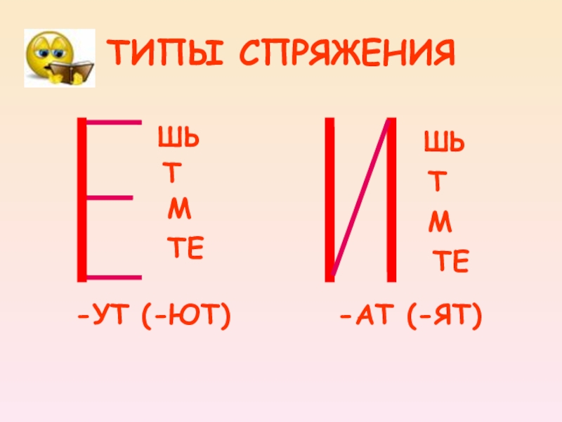 ТИПЫ СПРЯЖЕНИЯШЬТМТЕ-УТ (-ЮТ)ШЬТМТЕ-АТ (-ЯТ)