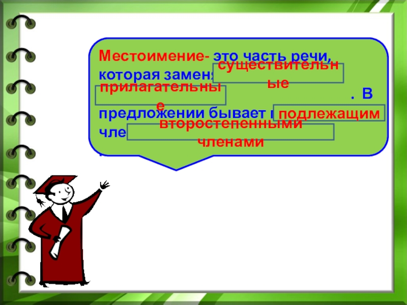 3) Отвечает на вопросы кто?, что?