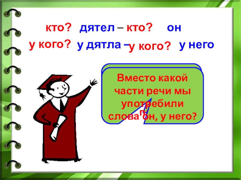 Вместо какой части речи мы употребили слова он, у него?
