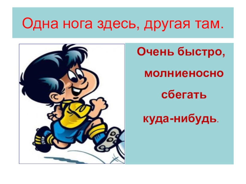 Одна нога здесь, другая там. Очень быстро, молниеносно сбегать куда-нибудь.