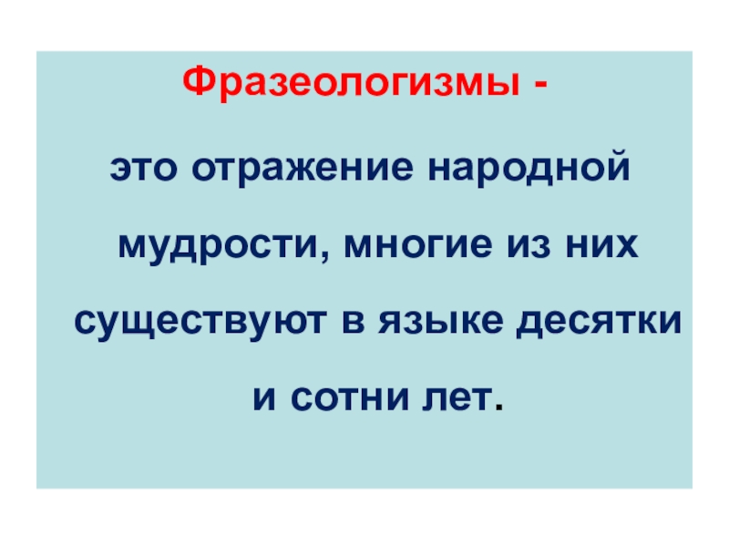 Фразеологизмы - это отражение народной мудрости, многие из них существуют в языке десятки и сотни лет.
