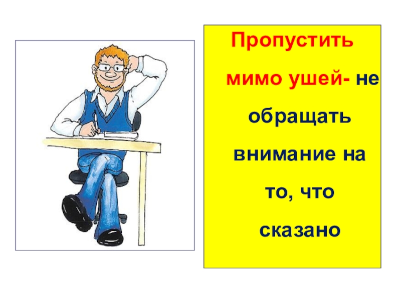 Слайд 18Пропустить мимо ушей- не обращать внимание на то, что сказано