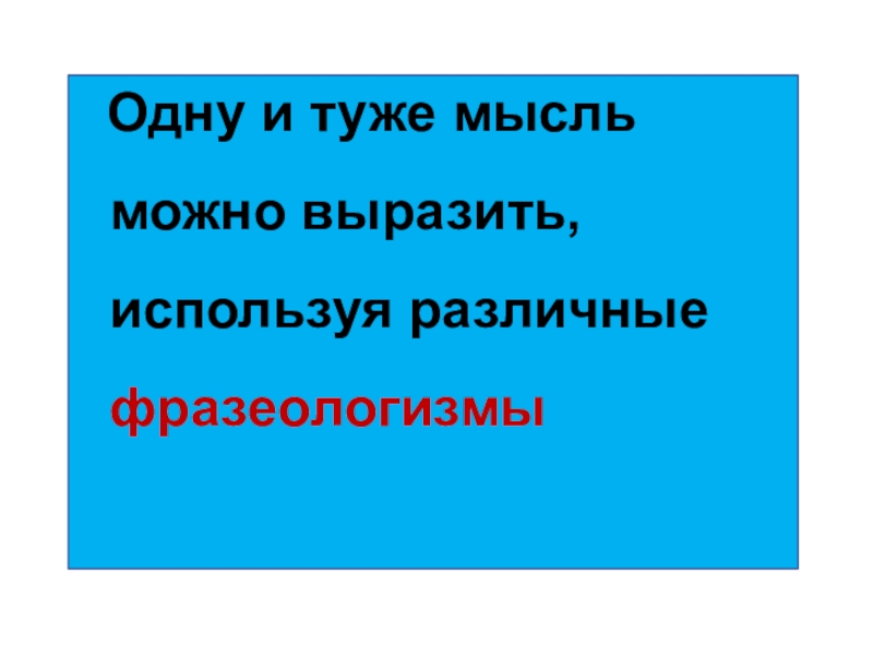 Слайд 2 Одну и туже мысль можно выразить, используя различные фразеологизмы