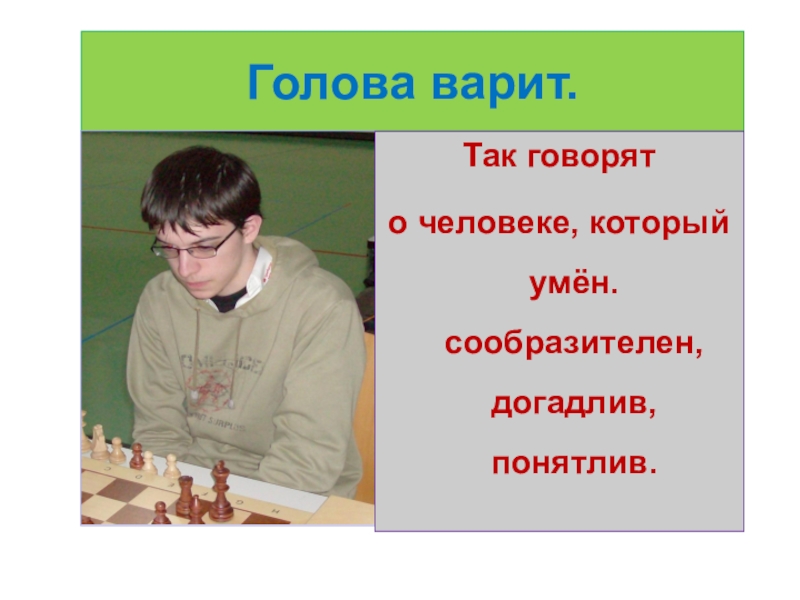 о человеке, который умён. сообразителен, догадлив, понятлив.