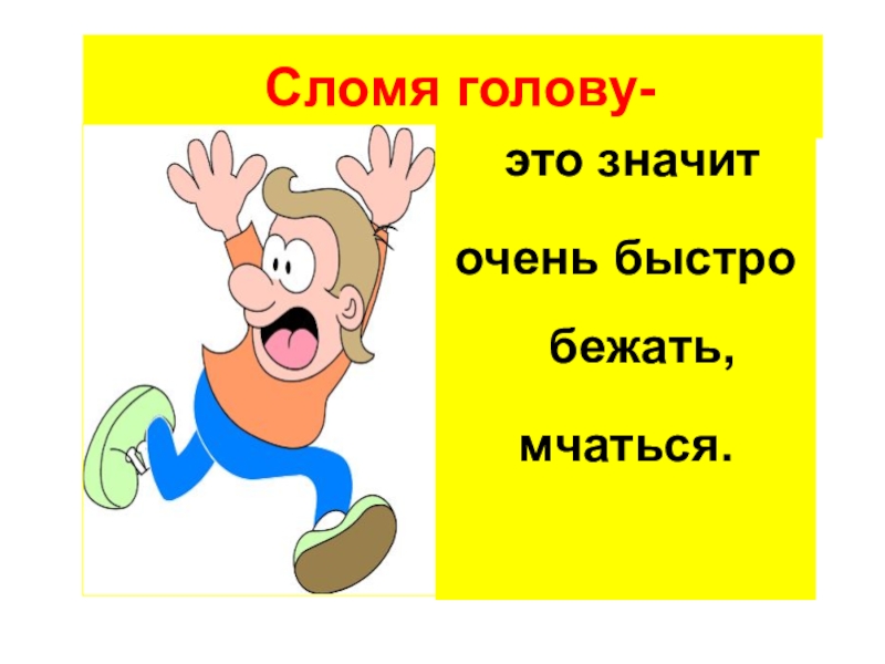 Сломя голову- это значит очень быстро бежать,мчаться.