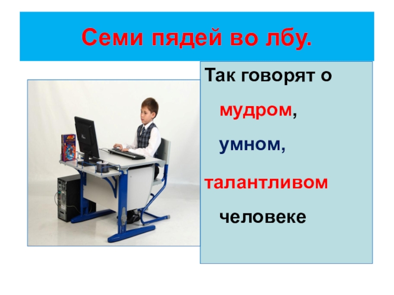 Семи пядей во лбу.Так говорят о мудром, умном,талантливом человеке