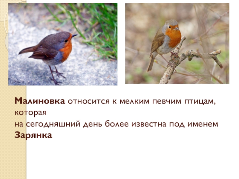 Слайд 14 Малиновка относится к мелким певчим птицам, которая на сегодняшний день более