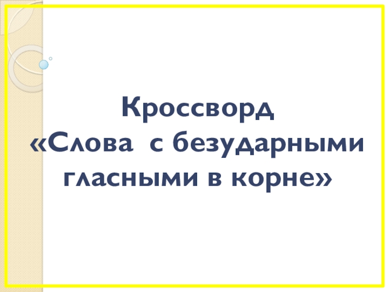 Слайд 3Кроссворд «Слова с безударными гласными в корне»