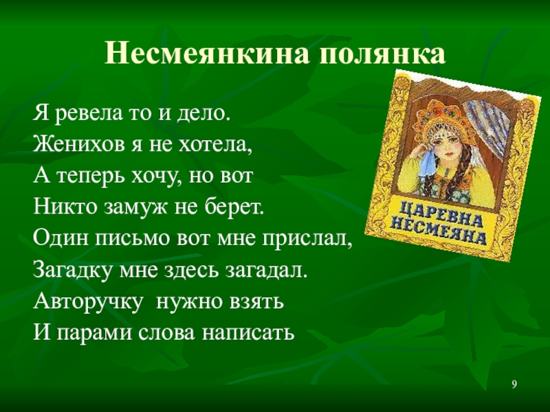 Слайд 9Несмеянкина полянка