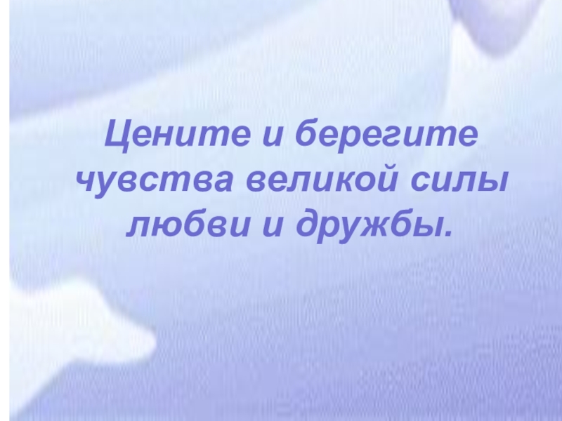 Слайд 43Цените и берегите чувства великой силы любви и дружбы.