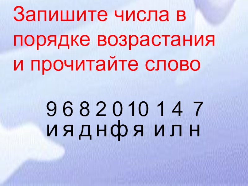 9682010147ияднфяилнЗапишите числа в порядке возрастания и прочитайте слово