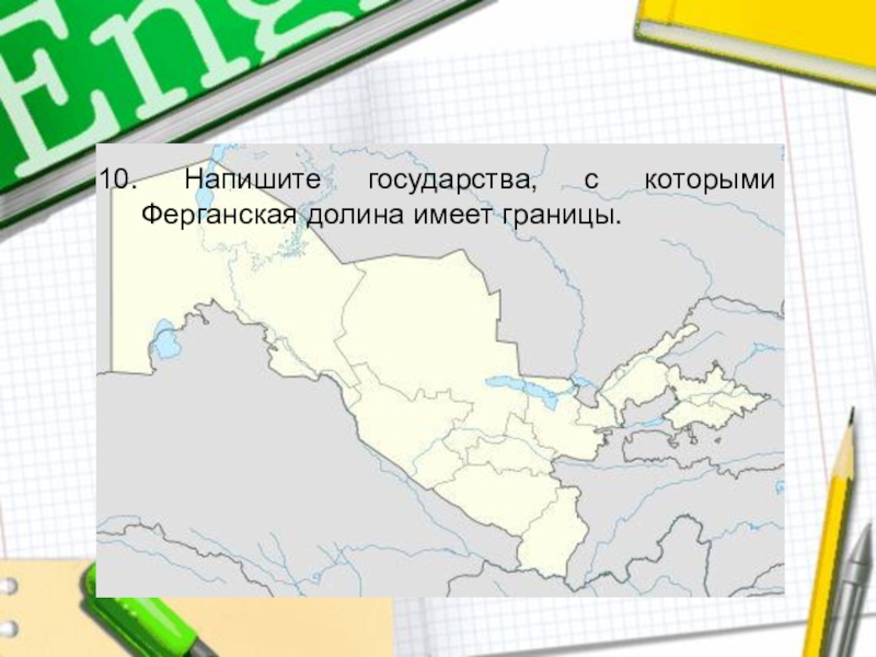 10. Напишите государства, с которыми Ферганская долина имеет границы.