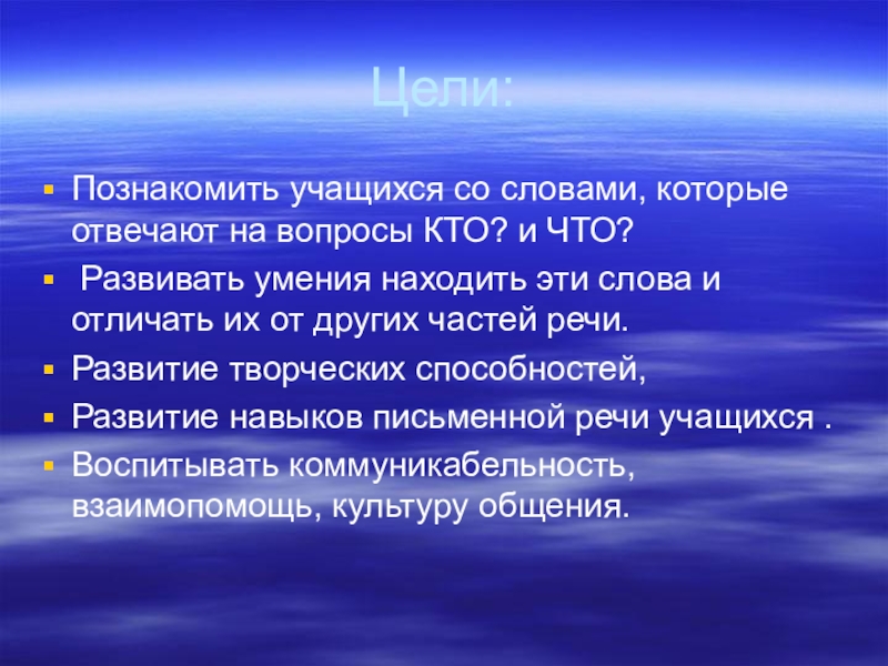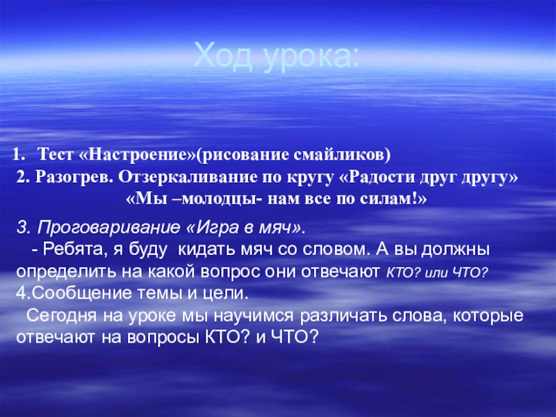 Тема: Слова отвечающие на вопрос КТО? И ЧТО?