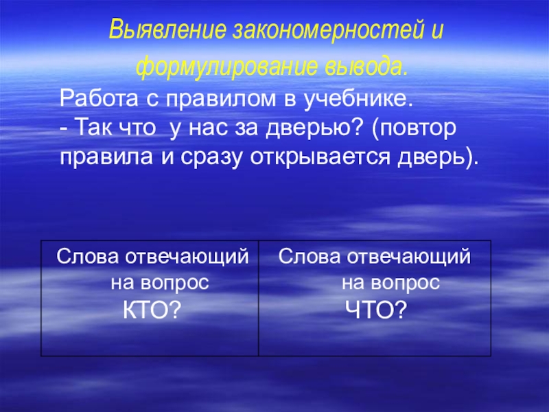Сегодня на уроке мы научимся различать слова, которые отвечают на вопросы КТО? и ЧТО?