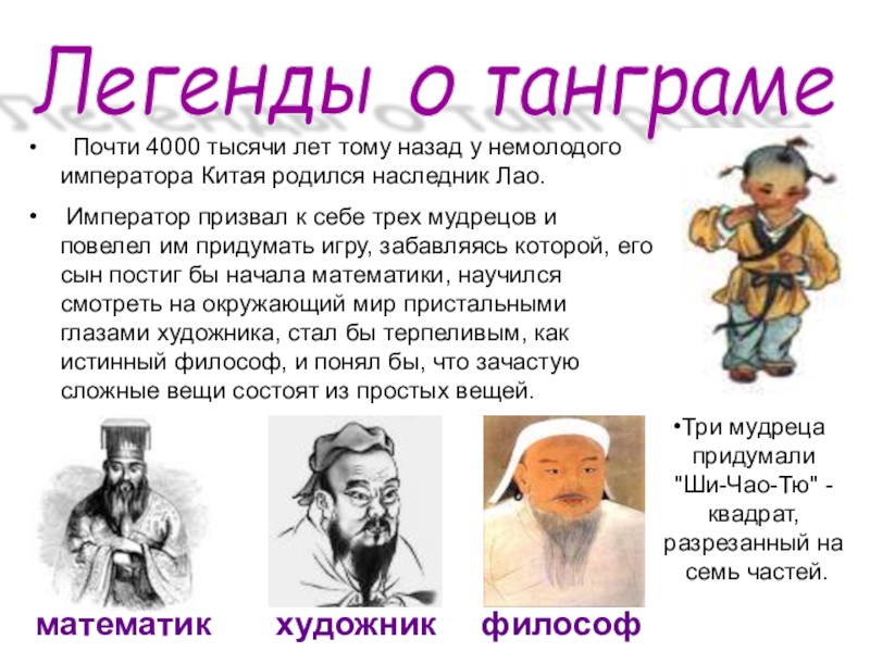 Три мудреца придумали "Ши-Чао-Тю" - квадрат, разрезанный на семь частей.