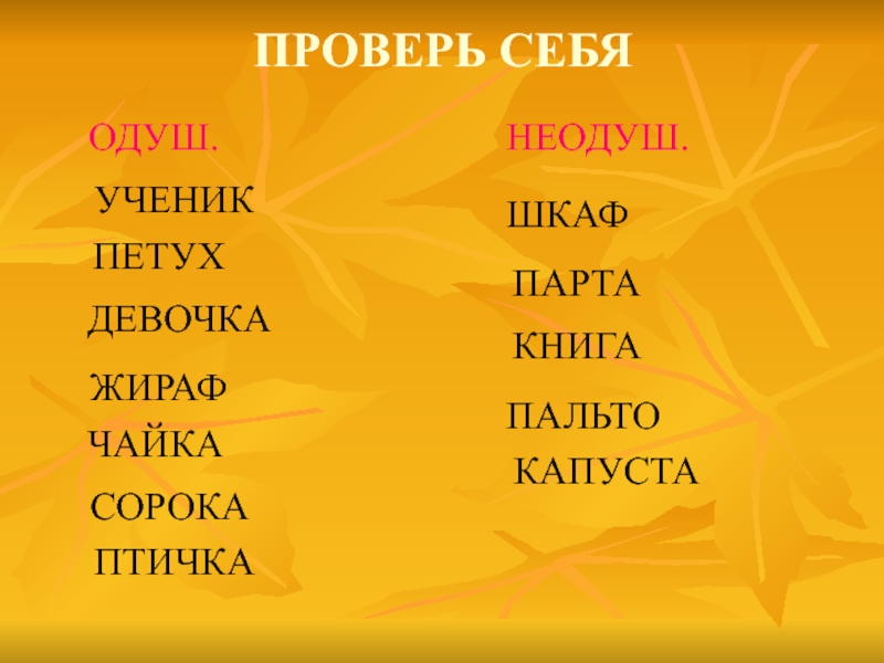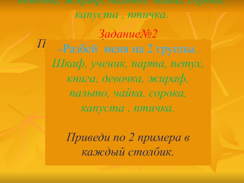 Шкаф, ученик, парта, петух, книга, девочка, жираф, пальто, чайка, сорока,