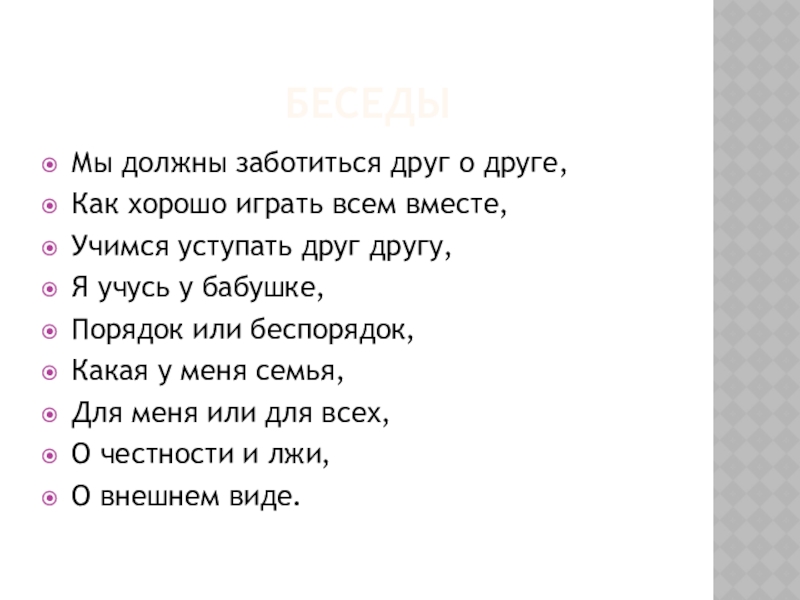 БЕСЕДЫМы должны заботиться друг о друге,Как хорошо