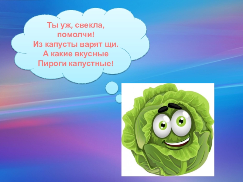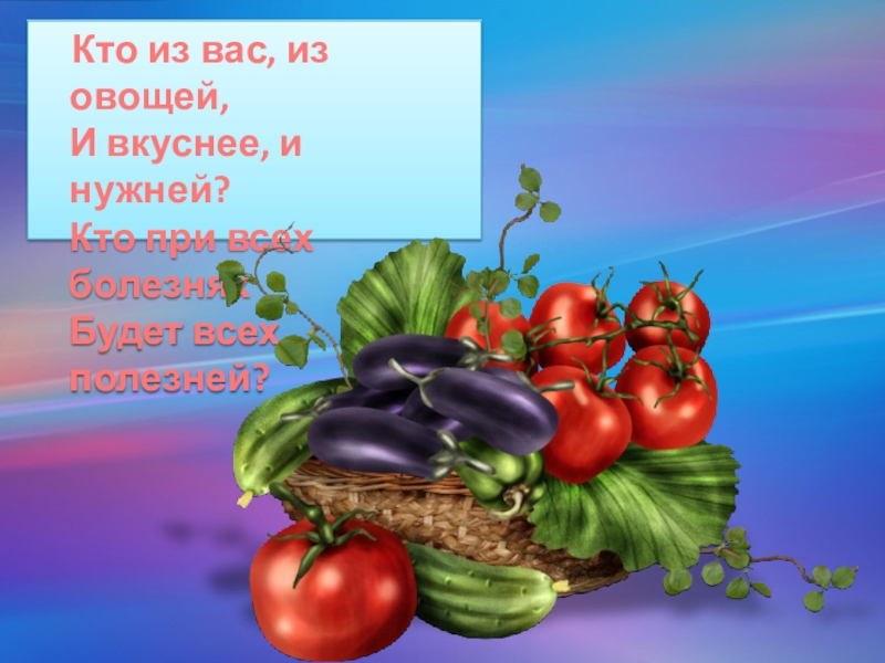 Слайд 15Ну вот, опять овощи спор завели, какой из них самый нужный…