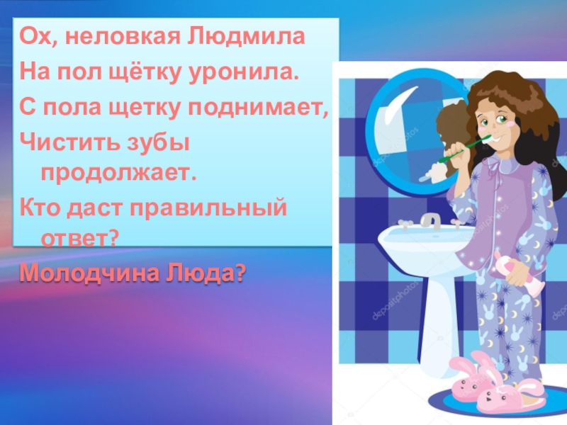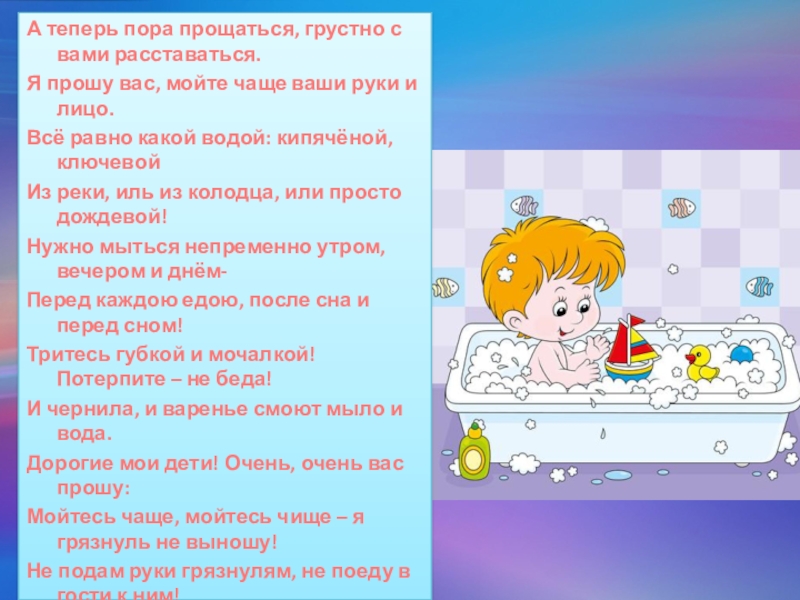 Мойтесь чаще, мойтесь чище – я грязнуль не выношу!