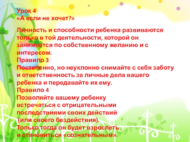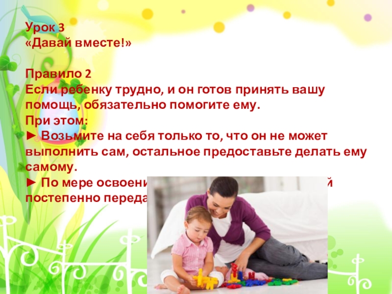 ► Не вмешиваться в его занятия, с которыми он справляется.