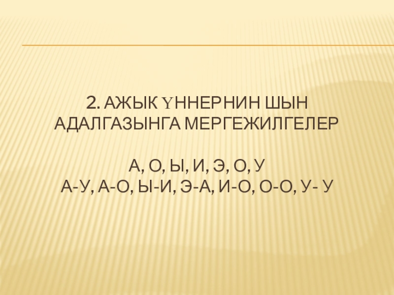 2. Ажык yннернин шын адалгазынга мергежилгелер  а, о, ы, и, э, о, у а-у, а-о, ы-и,