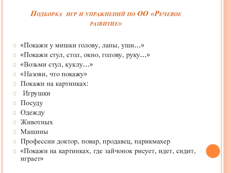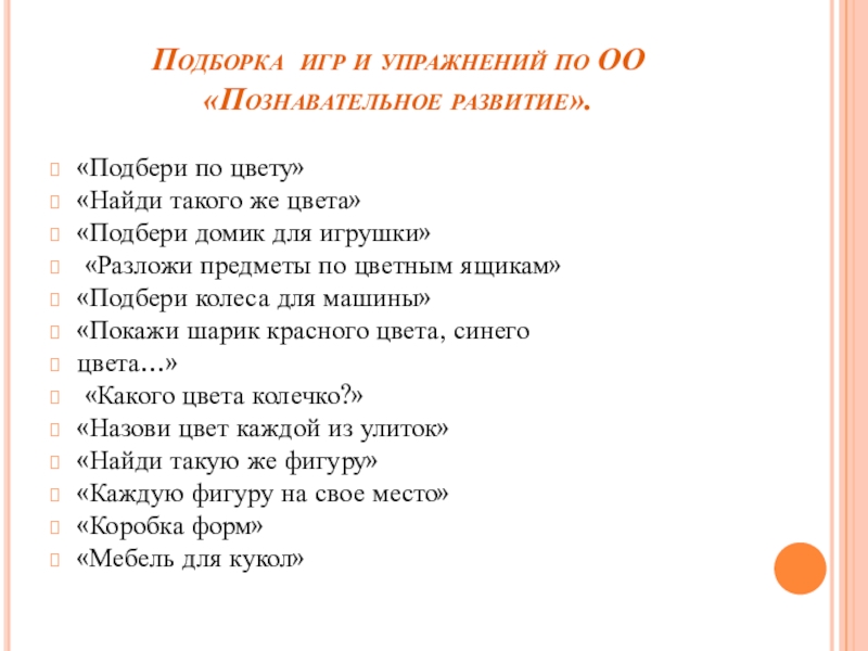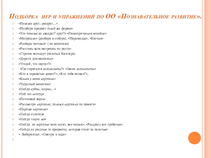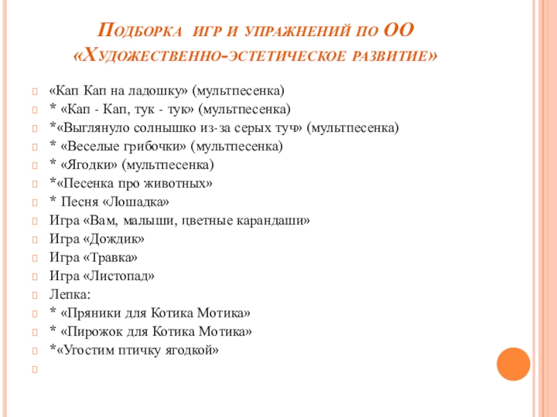 Слайд 21Подборка игр и упражнений по ОО «Художественно-эстетическое развитие»
