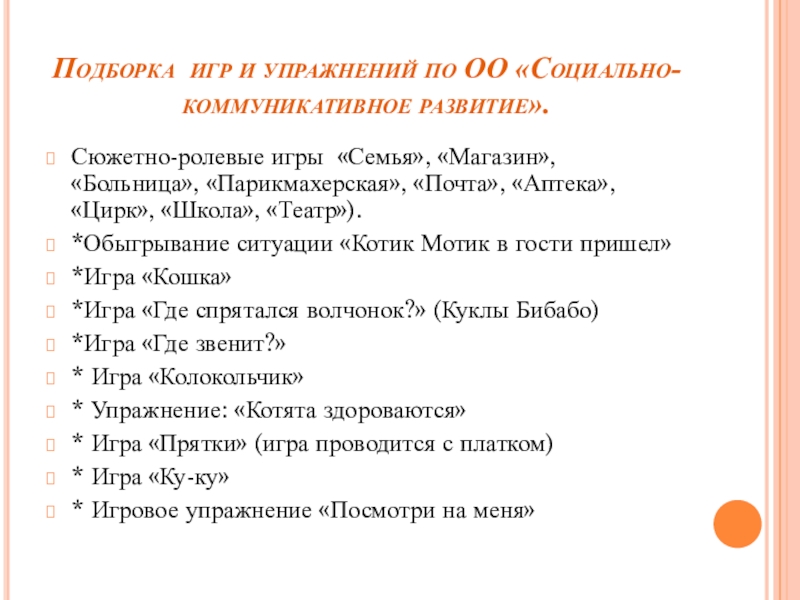 Слайд 12Подборка игр и упражнений по ОО «Социально-коммуникативное развитие».