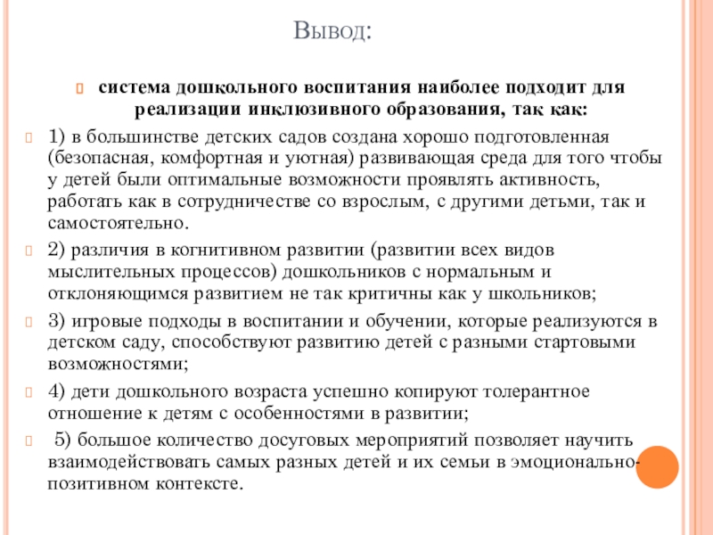 система дошкольного воспитания наиболее подходит для реализации инклюзивного образования, так как: