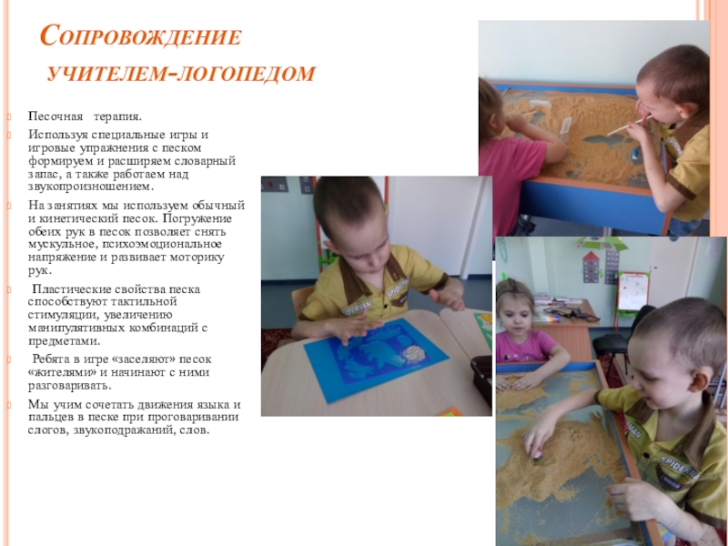 песком формируем и расширяем словарный запас, а также работаем над звукопроизношением.