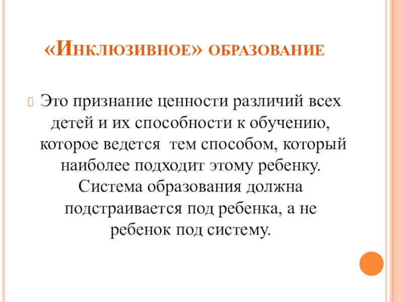 обучению, которое ведется тем способом, который наиболее подходит этому ребенку. Система образования должна подстраивается под ребенка, а не ребенок под систему.