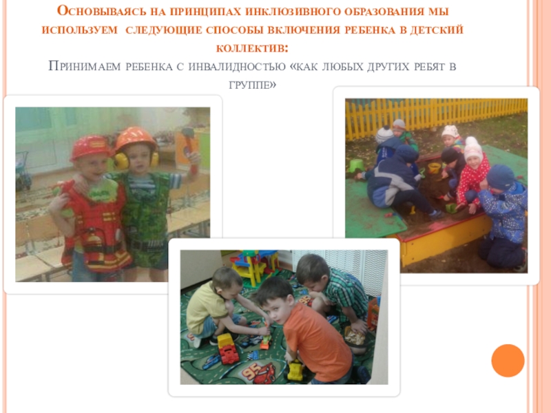 Слайд 7Основываясь на принципах инклюзивного образования мы используем следующие способы включения ребенка