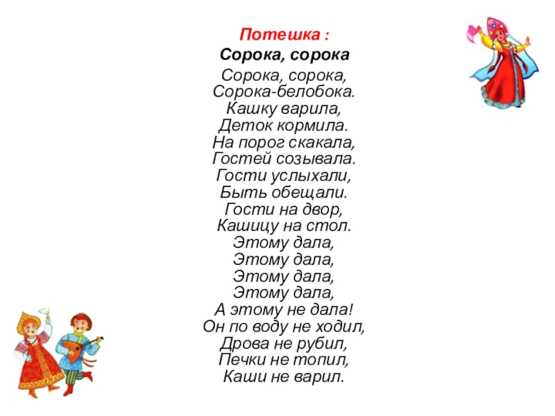 Слайд 12Прибаутка :