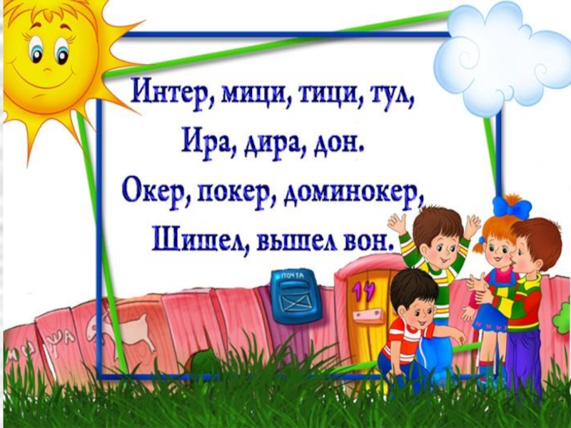 Считалками принято называть короткие рифмованные стихи, применяемые детьми для определения ролей в игре. Главная особенность считалки –