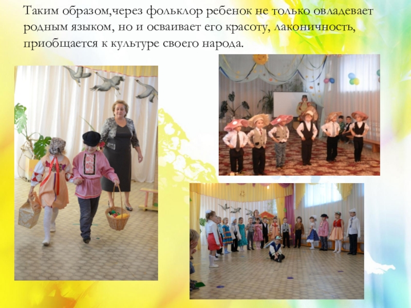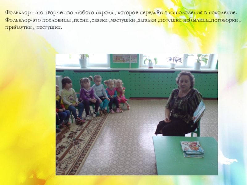 Словесный метод: коллективное чтение, заучивание наизусть, сочинение сказок.